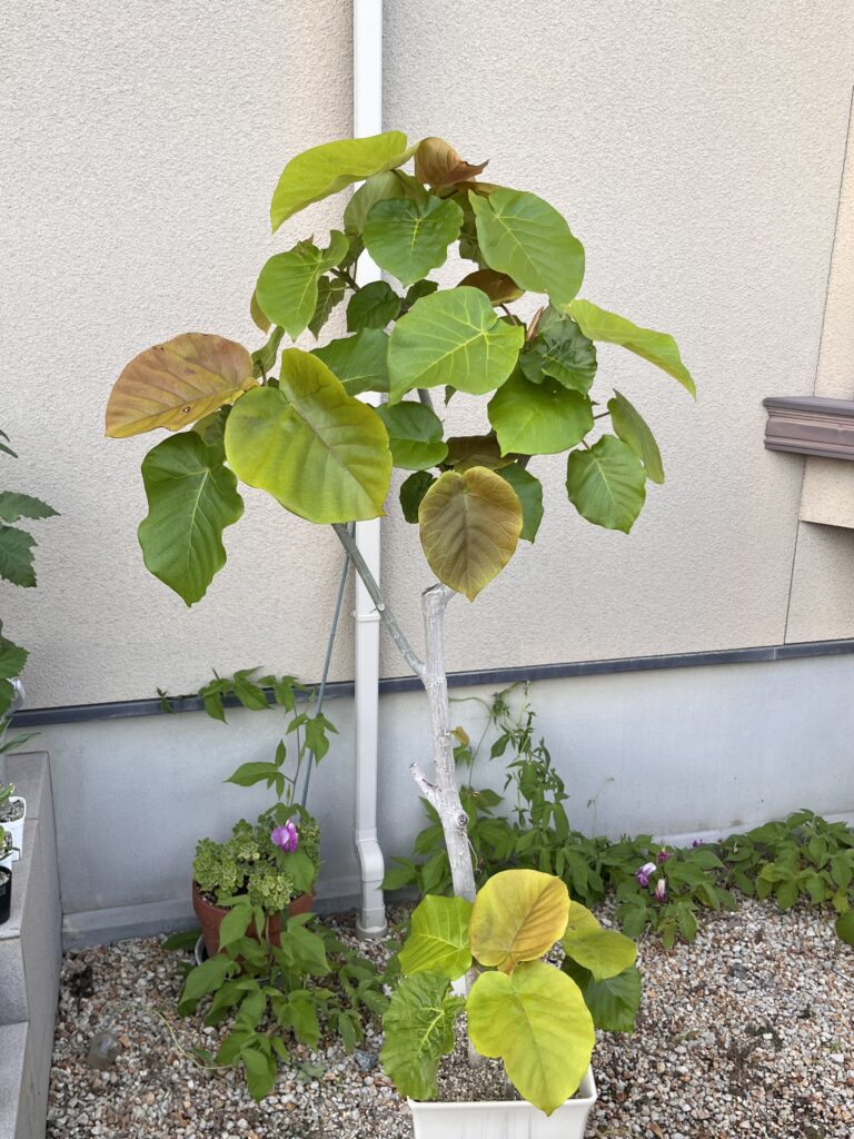 パキラは、我慢できずに春に丸坊主にして屋外に出してみました。そしたらスイッチが入ったのか、新芽を展開してくれるようになりました。カポックは気が付いたら、1つ新芽が出ていました。