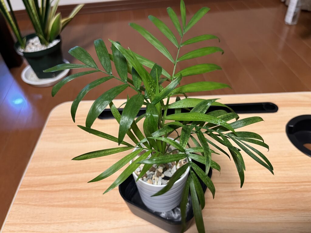花をさかせたテーブルヤシは枯らしてしまいましたので、もう一度花を見たくて、100均産テーブルヤシを育てています。
