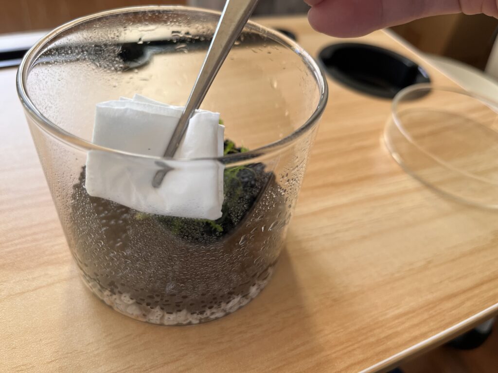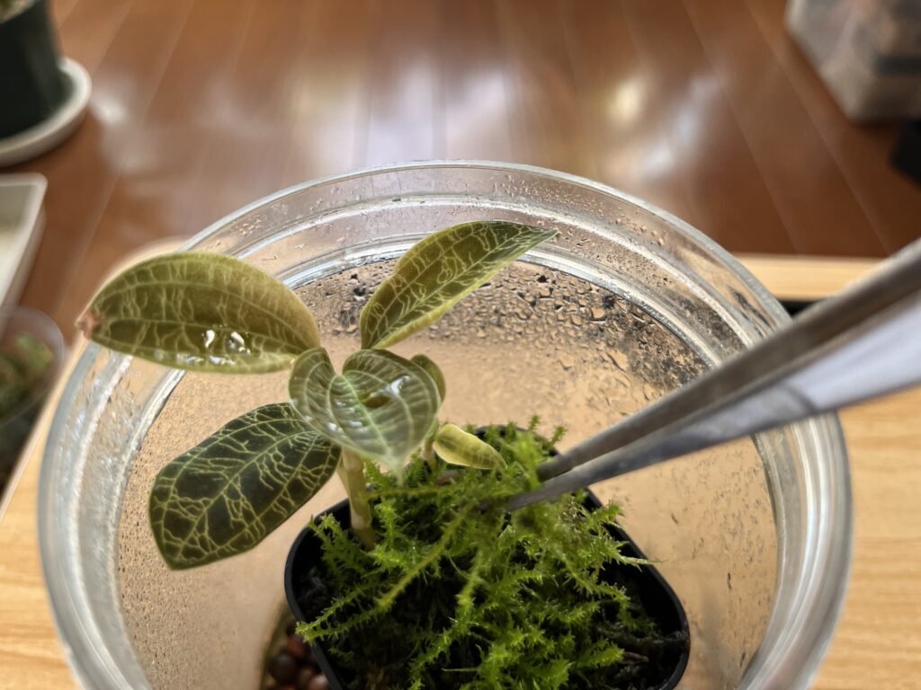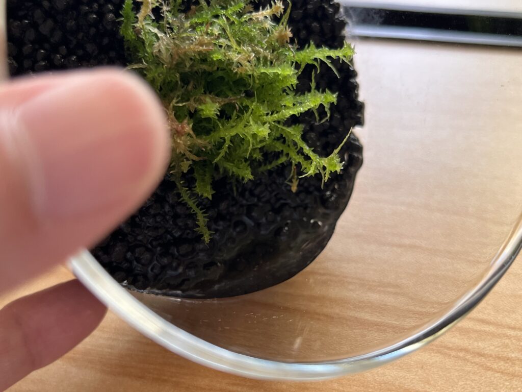 - カビが生えたコケやソイルをピンセットでやさしく取り除く