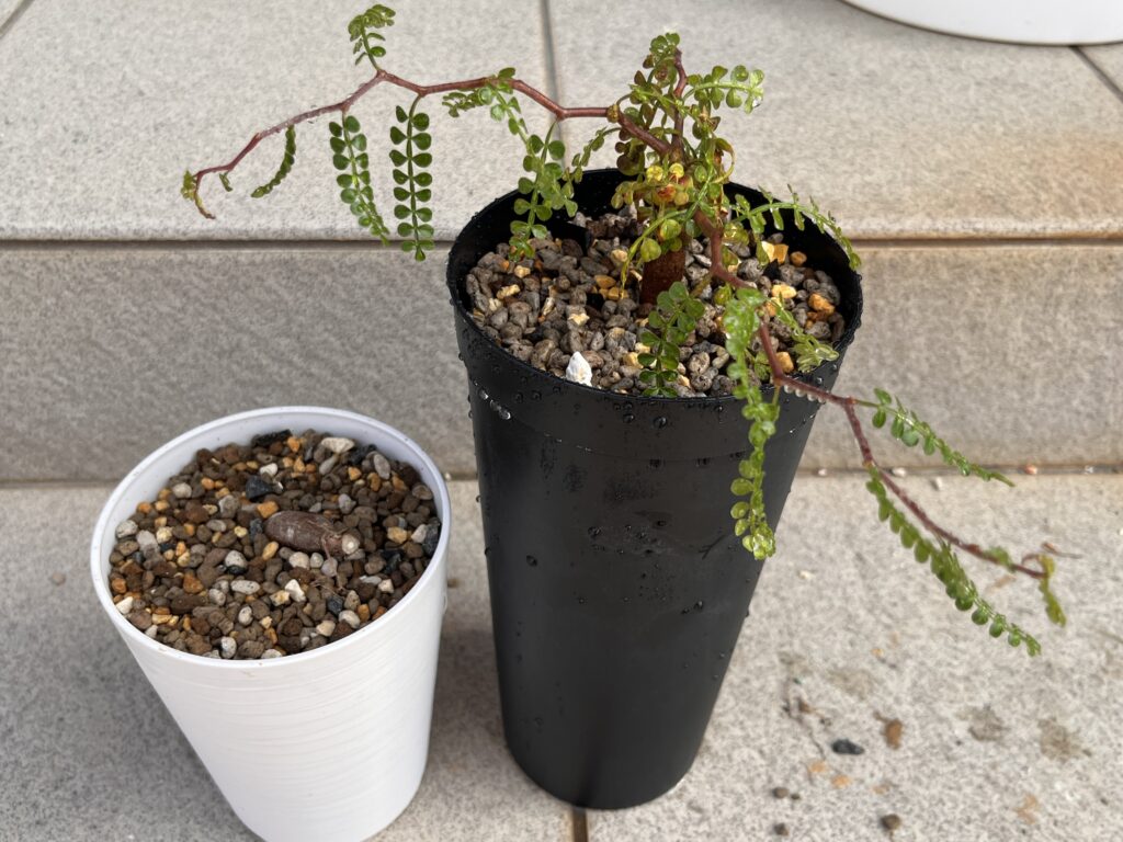 植え替えたばかりなので、直射日光ガンガンの環境はさすがに厳しすぎるとの考えから、午前中2~3時間程日が当たる風通しの良い場所で育てることにしました。7日~10日くらい様子見して、もともと置いていた1日中日光が当たる場所に移動予定。