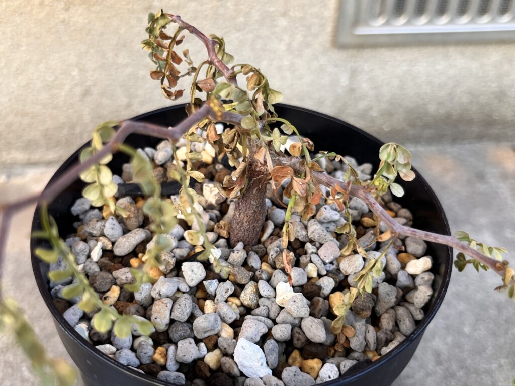 「泣き面に蜂」とはまさしくこのことですね。葉っぱを全部落としたうえに、鉢から強制的に出されて、絶体絶命のピンチとなりました。